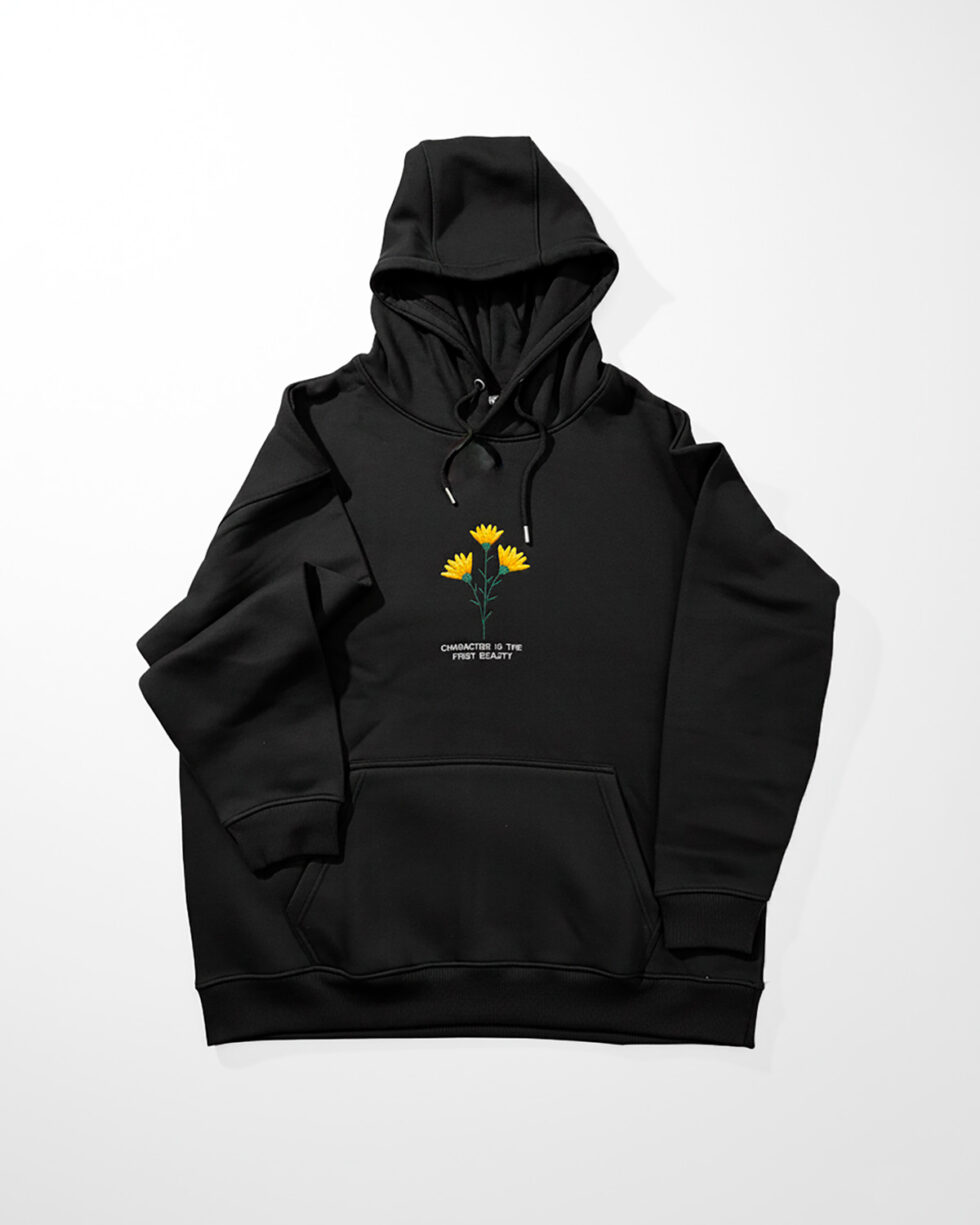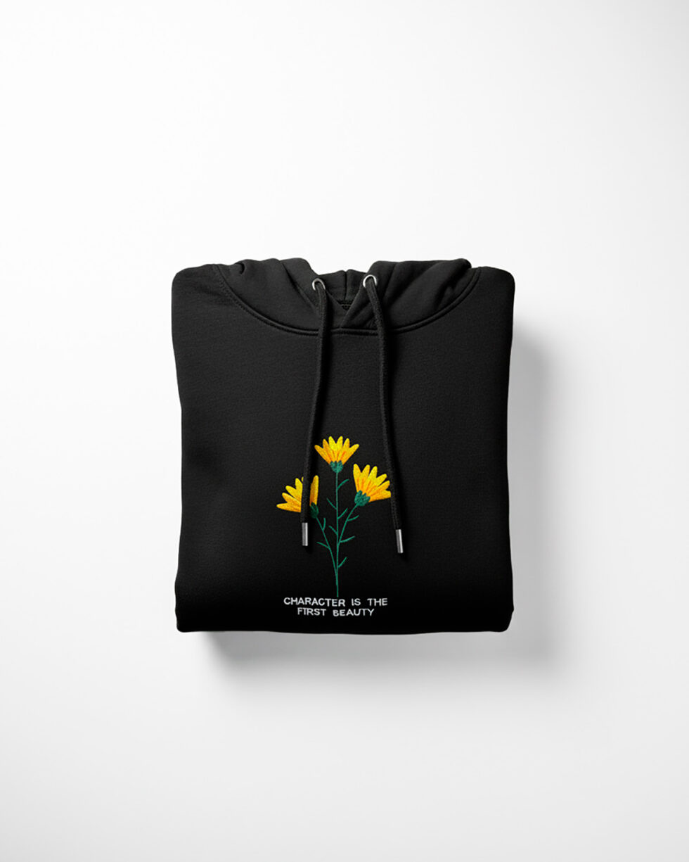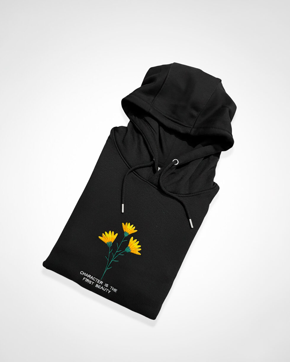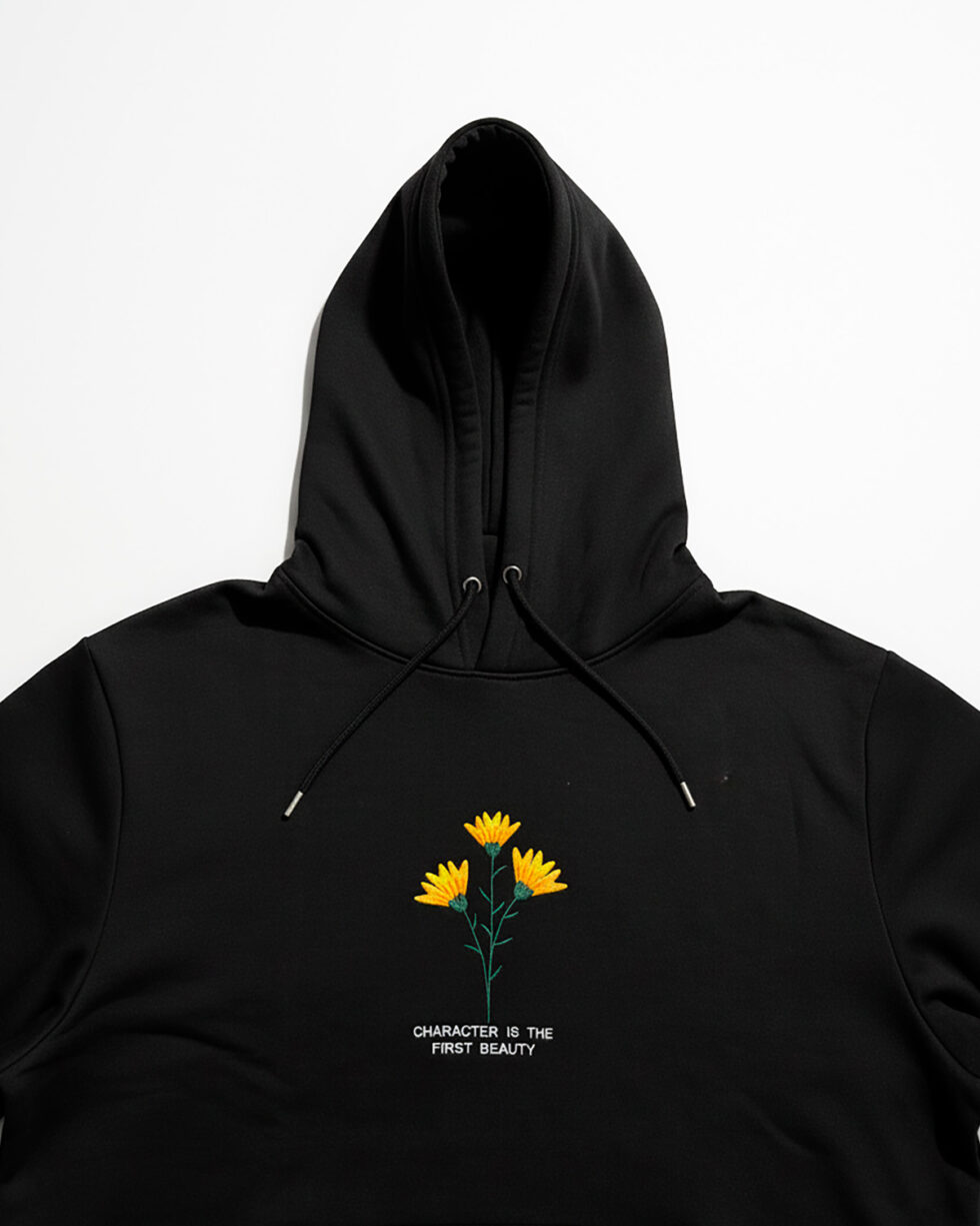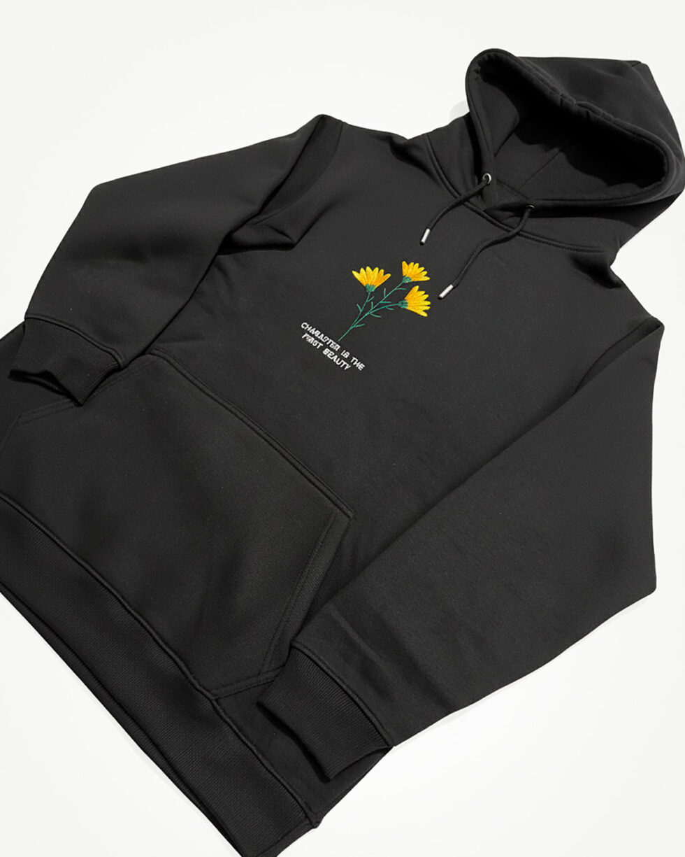 DORI’s black embroidered hoodie brings luxe comfort and modern streetwear flair to your everyday look.