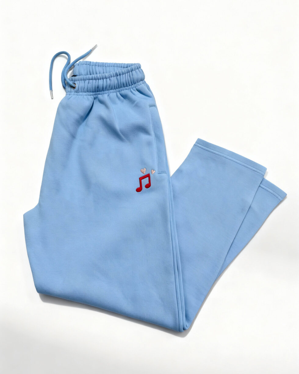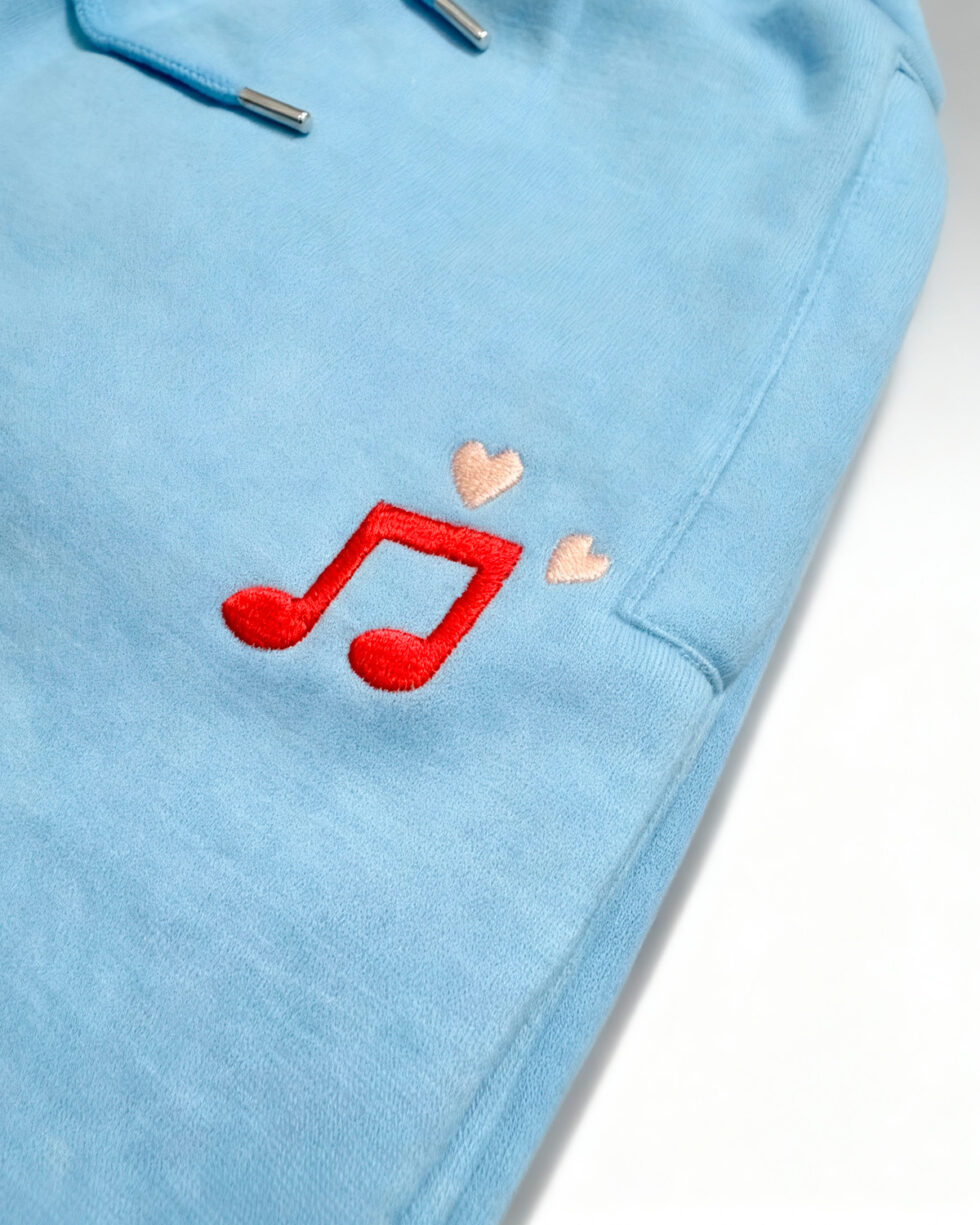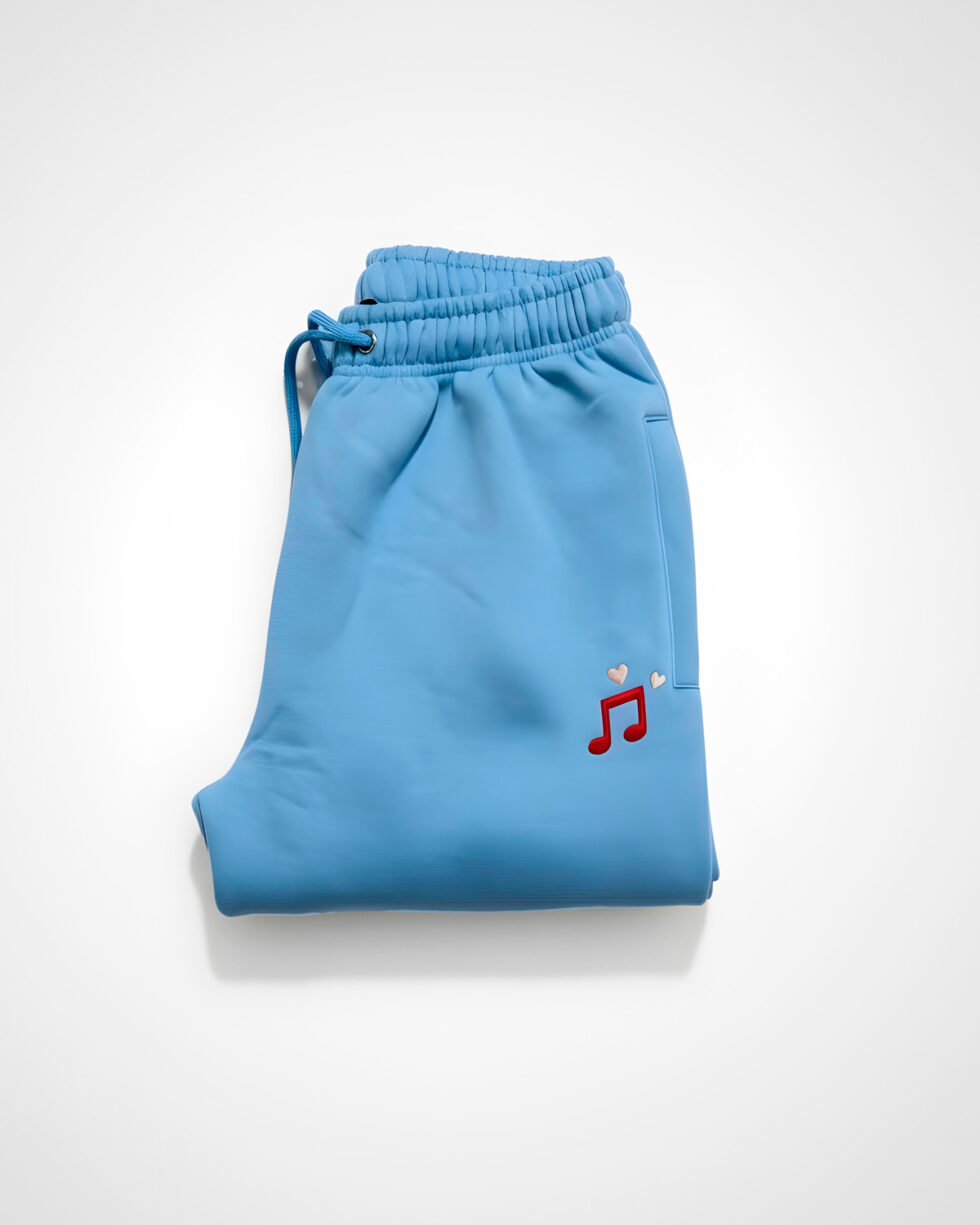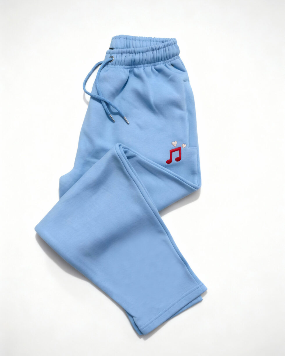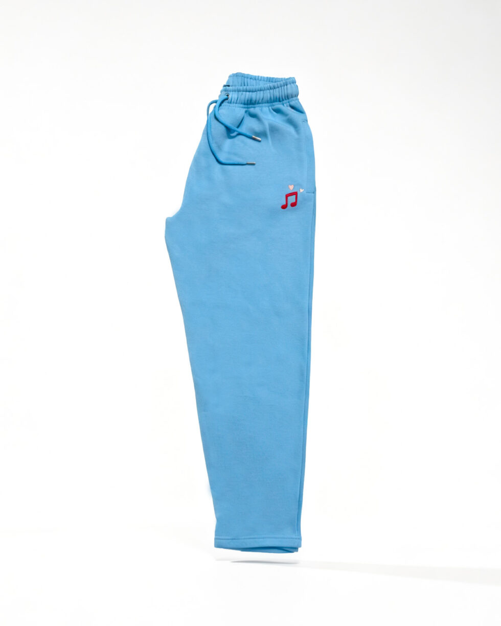 DORI’s blue embroidered trouser — a soft fleece essential designed for relaxed streetwear style and effortless versatility.